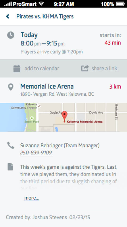 The app also delivers each user a fully customized experience based on their location, time of year, age of athletes, and role of the individual within a team.